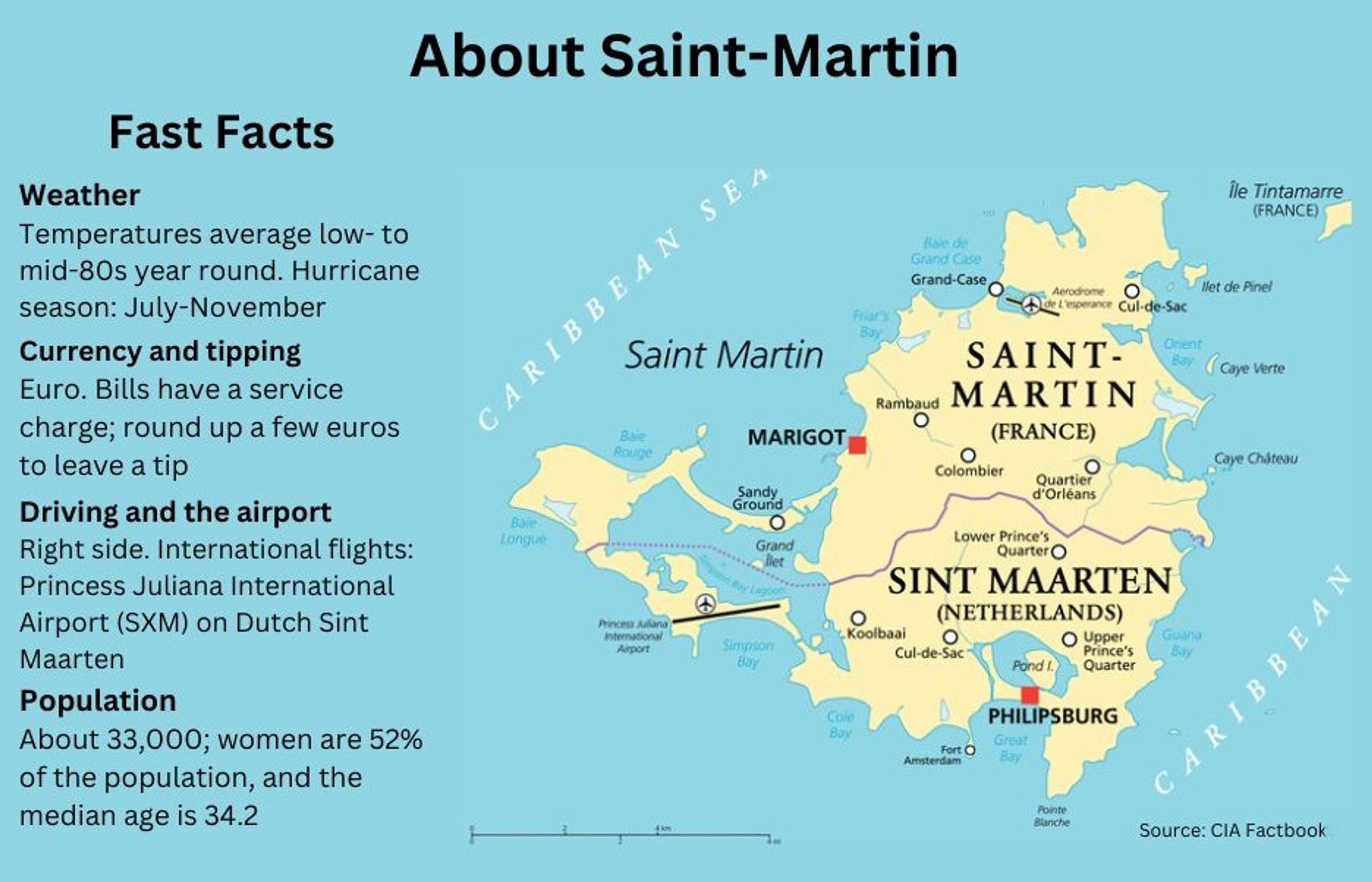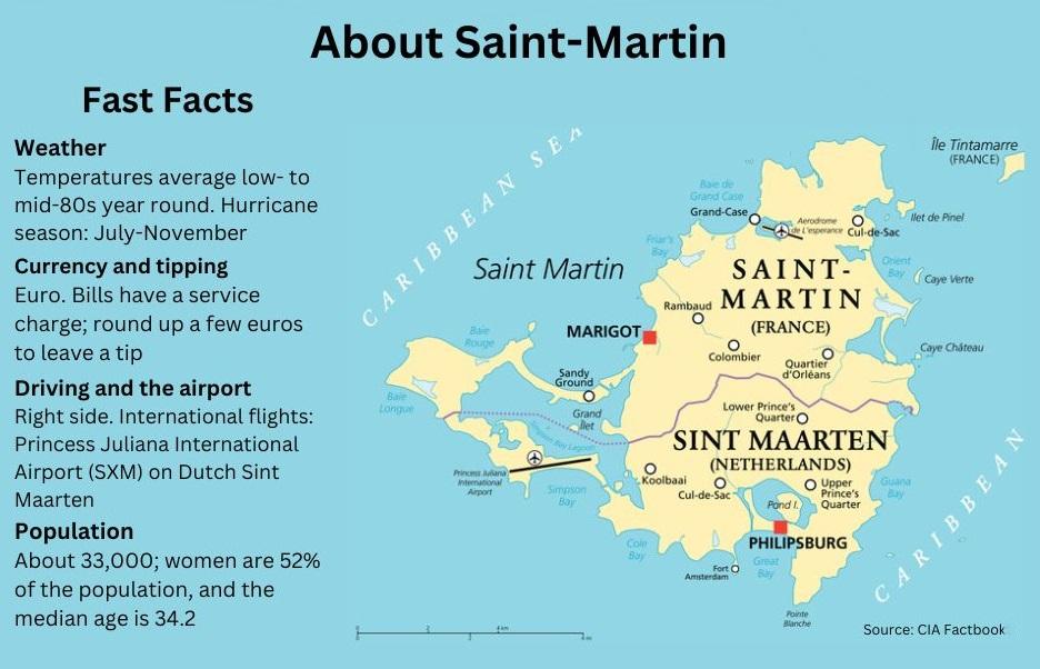 This West Indies island, about 150 miles southeast of Puerto Rico, is awash in the turquoise waters of the Caribbean (Orient Bay is pictured above) and has two parts. Its northern part, called Saint-Martin, is an overseas collectivity of France. The southern side, known as Sint Maarten, is Dutch. Each has a capital: Marigot on the French side and Philipsburg on the Dutch. There are no official border crossings, and residents usually move freely between the two.