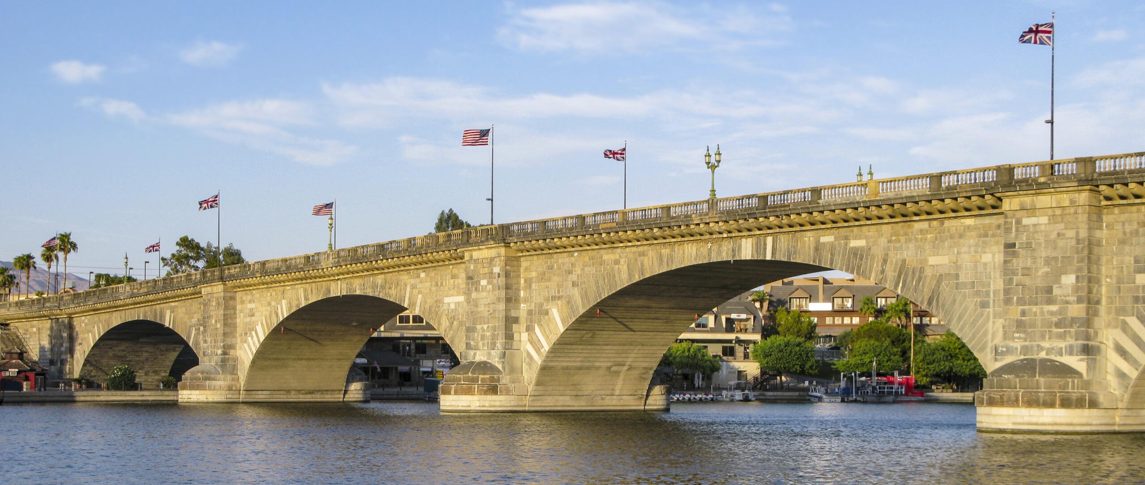 London Bridge today isn't the original and also isn't quite as pretty as its predecessor (below), which now stands in Arizona./Photo above Wikimedia Commons by Oxyman. Lake Havasu, Arizona, photo below by Shutterstock