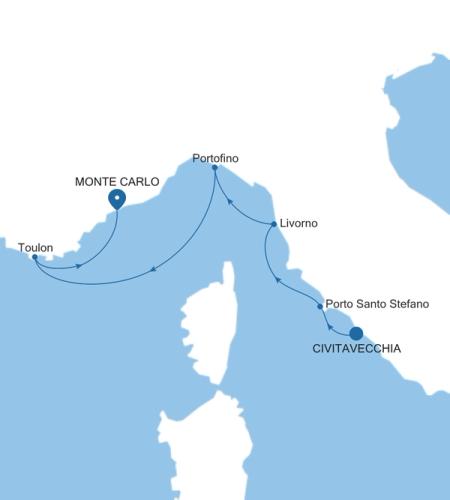 Verbringen Sie den Sommer an einigen der schönsten und exklusivsten Orte des westlichen Mittelmeers. Die Silver Ray hat den Begriff Luxus wirklich neu definiert, und unser neuestes Schiff bringt Sie auf angenehmste Weise von den antiken Straßen Roms zu den glamourösen Casinos und exquisiten Palästen Monte Carlos. Ein Übernachtungsaufenthalt in Livorno bietet Ihnen vielfältige Möglichkeiten, die Schönheit der Toskana zu erleben – vom berühmten Schiefen Turm von Pisa bis hin zu den Meisterwerken der Renaissance in Florenz. Weiter geht es zum farbenfrohen Portofino und schließlich zu den nach Lavendel duftenden Küsten der Provence.